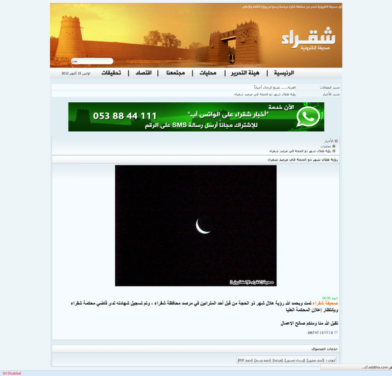 وها أنتم أضللتم حجّاج بيت الله الحرام عن يوم الحجّ المعلوم في الكتاب، ألا وإنّ الحجّ عرفة تاريخ تسعة من ذي الحجّة ولكنّكم جعلتم يوم عرفة لعامكم هذا 1433 هو يوم عيد الأضحى المبارك، وأرجعتم شهادة رؤية هلال ذي الحجّة لعامكم 1433 في منطقة شقراء بالمملكة العربيّة السعوديّة.